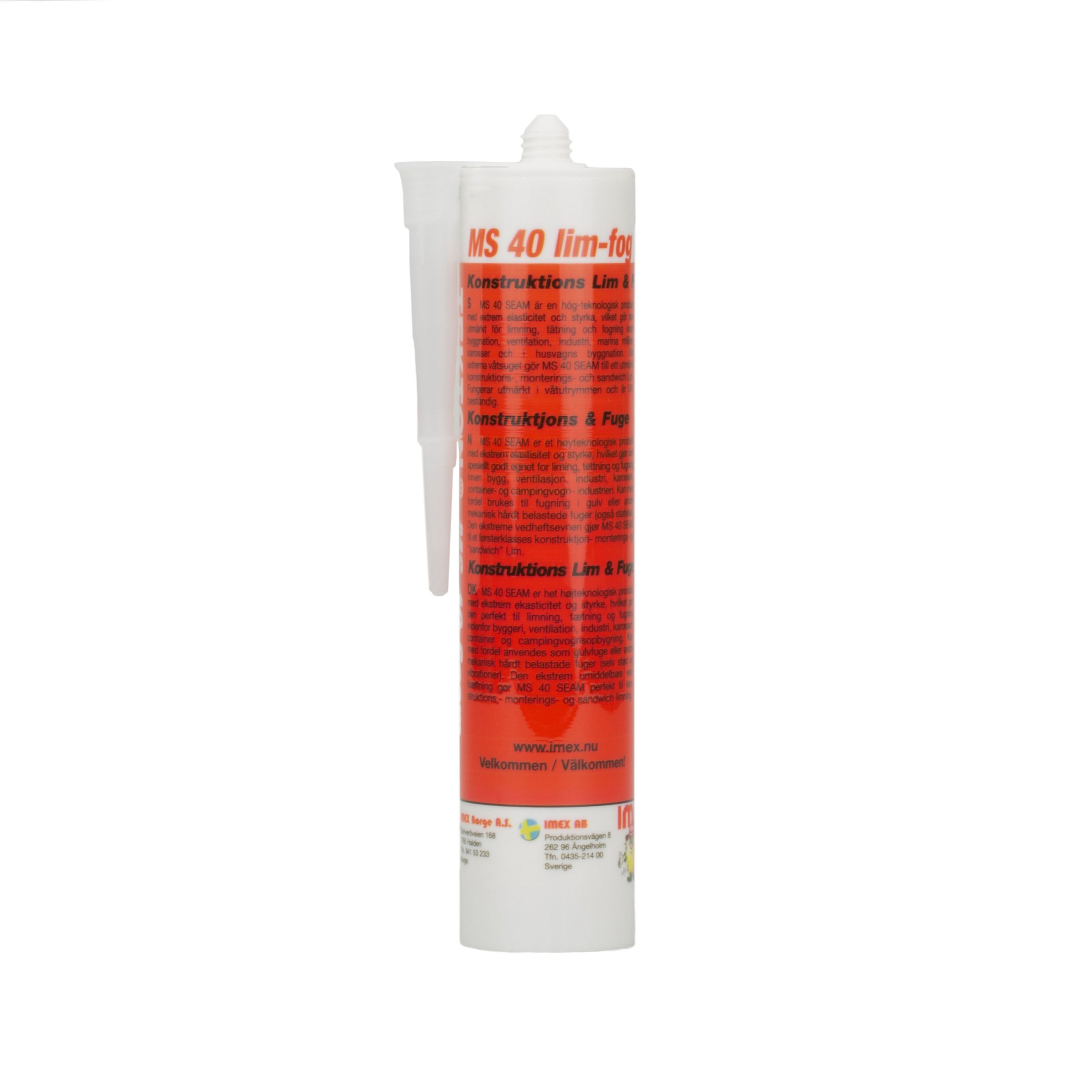 MS-40 SEAM er et højteknologisk produkt med ekstrem elasticitet og styrke, hvilket gør den god til limning, tætning og fugning inden for byggeri, ventilation, industri, karosseri, container- og camping-reparation. Kan med fordel anvendes som gulvfuge eller andre mekanisk hårdt belastede fuger (selv statiske). Det ekstreme vådsug gør MS-40 SEAM til en udmærket konstruktions-, monterings- og sandwich lim.